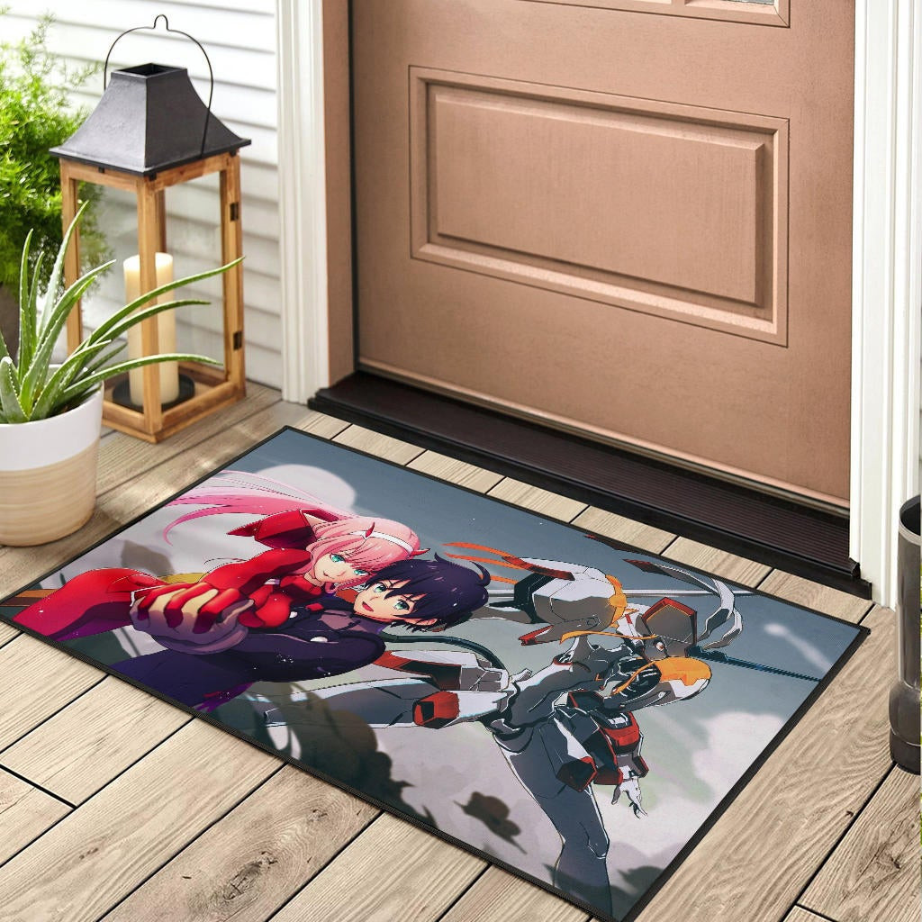 Darling In The Franxx Anime Rubber Doormat – Zero Two And Hiro Dancing With Strelitzia Rubber Doormat Home Decor