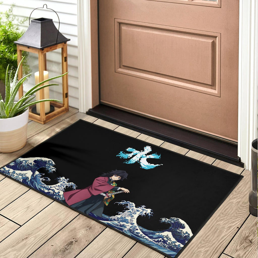 Demon Slayer Anime Rubber Doormat – Giyuu Standing In Water Blue Wave Rubber Doormat Home Decor