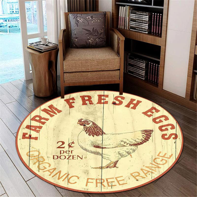 Farm Fresh Eggs Living Room Round Rug Carpet Bedroom Livingroom Home Decor