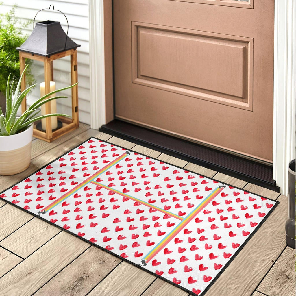 H-appy GG Dino Cute Red Heart Patterns Rubber Doormat Home Decor