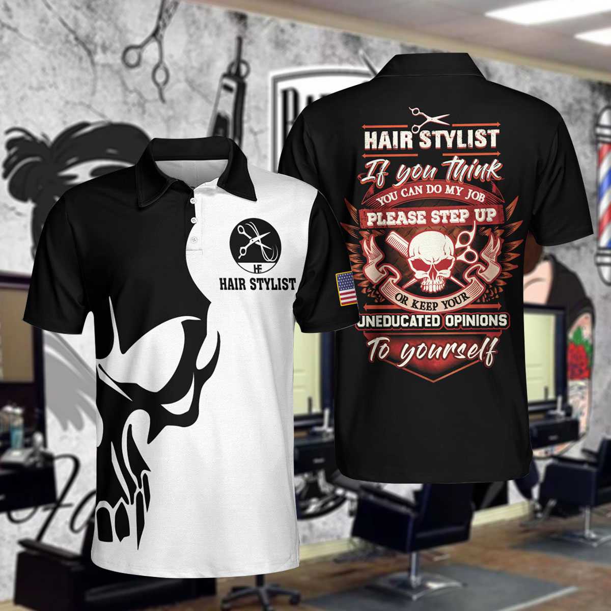 Hair Stylist Proud Skull Polo Shirt If You Think You Can Do My Job Skull Polo Shirt Hair Stylist Shirt For Men
