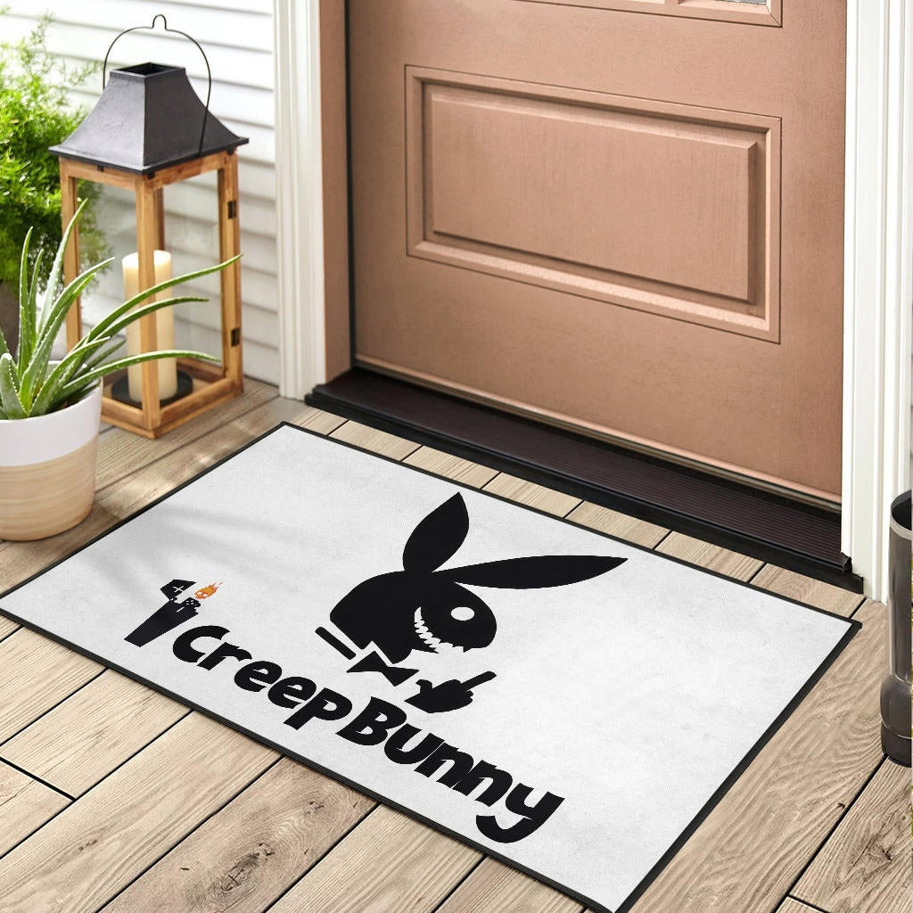 Halloween Rubber Doormat | Creep Bunny Sharp Teeth Rabbit Silhouette Rubber Doormat Home Decor