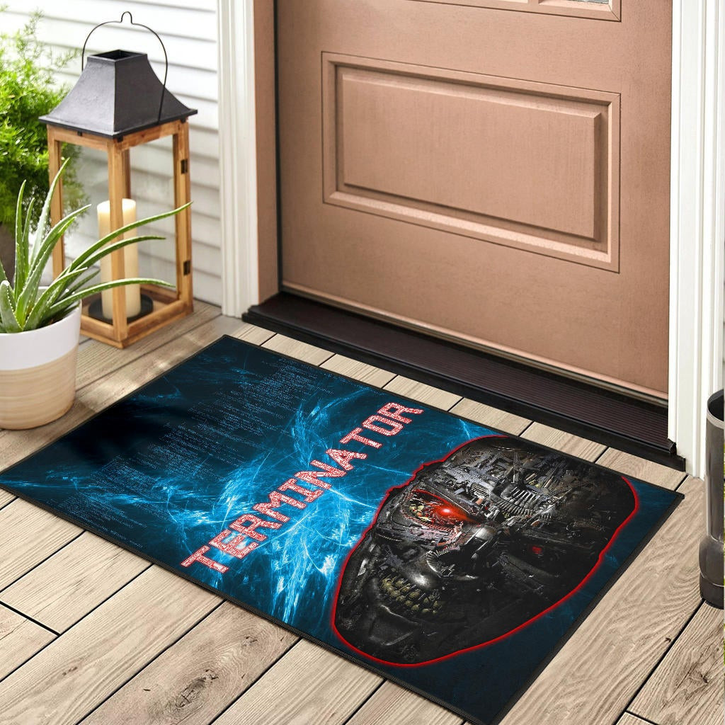 Horror Movie The Terminator Robot Face Blue Data Rubber Doormat Home Decor