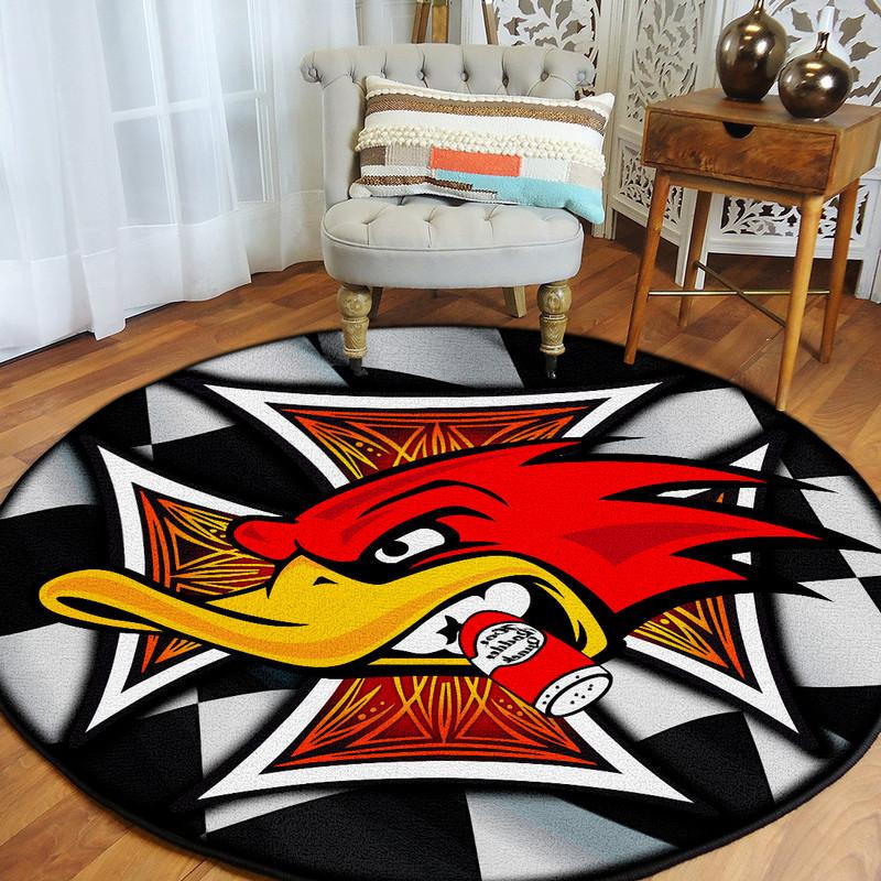 Hot Rod Woodpecker Round Rug Carpet Bedroom Livingroom Home Decor