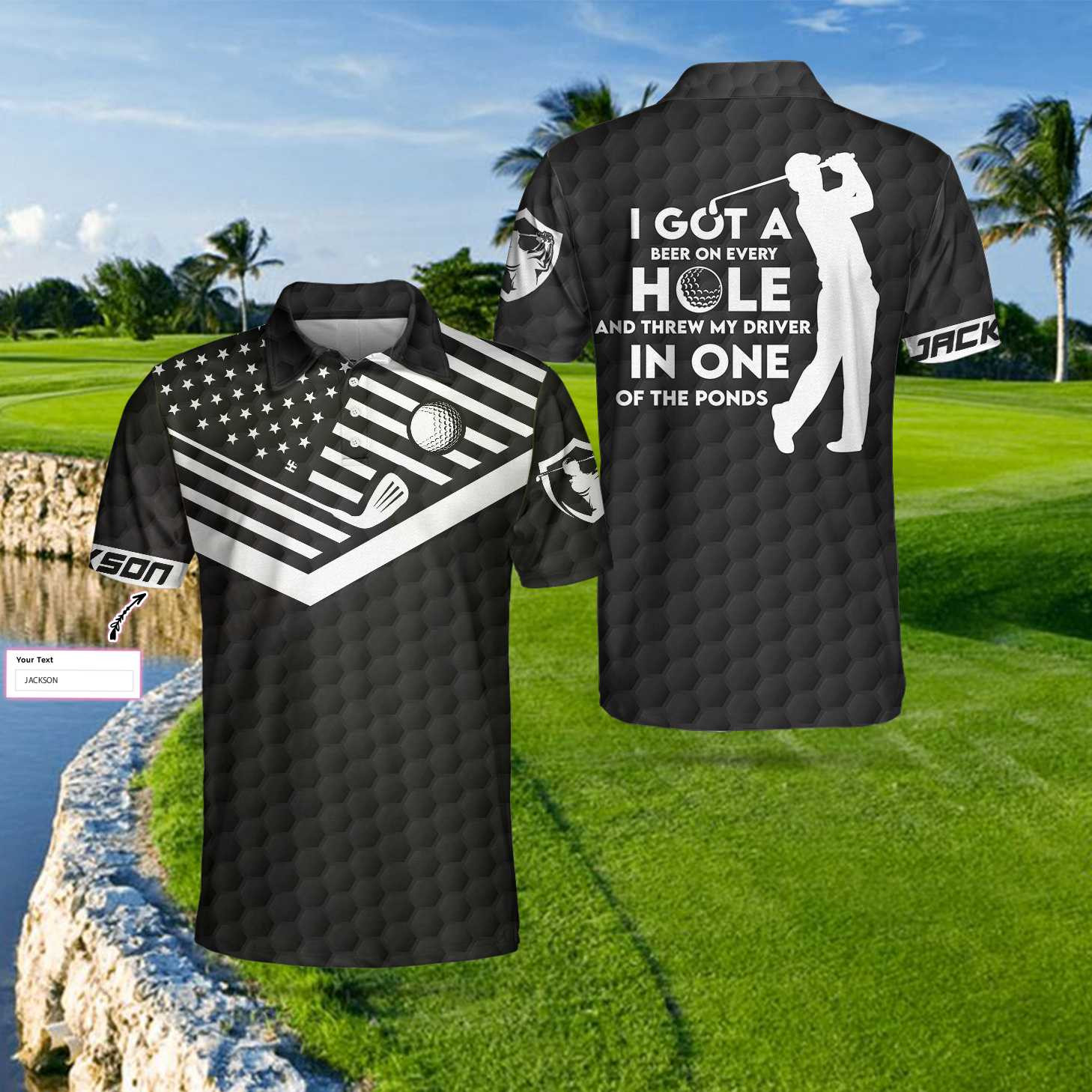 I Got A Hole In One Custom Polo Shirt Personalized Golf American Flag Polo Shirt Cool Golf Shirt For Men