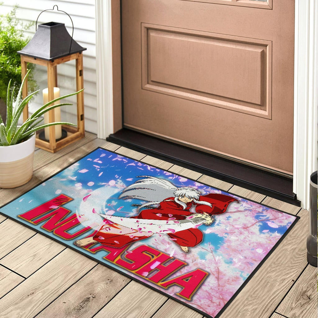 Inuyasha Anime Rubber Doormat Inuyasha Using Sword Sakura Blossom Flower Flying Rubber Doormat Home Decor
