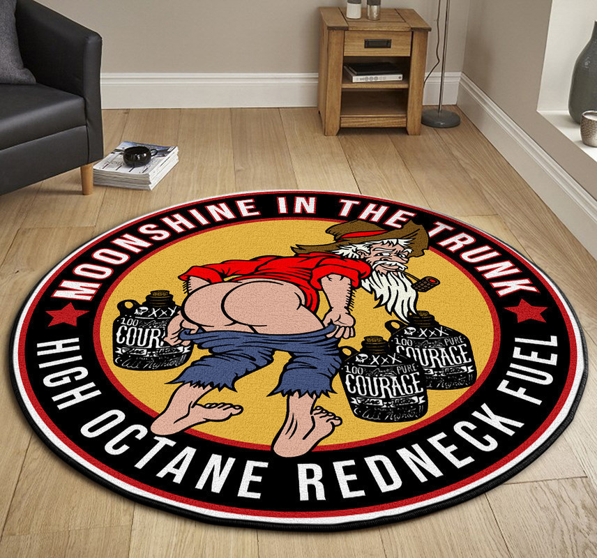 Moonshine In The Trunk Hot Rod Round Rug Carpet Bedroom Livingroom Home Decor