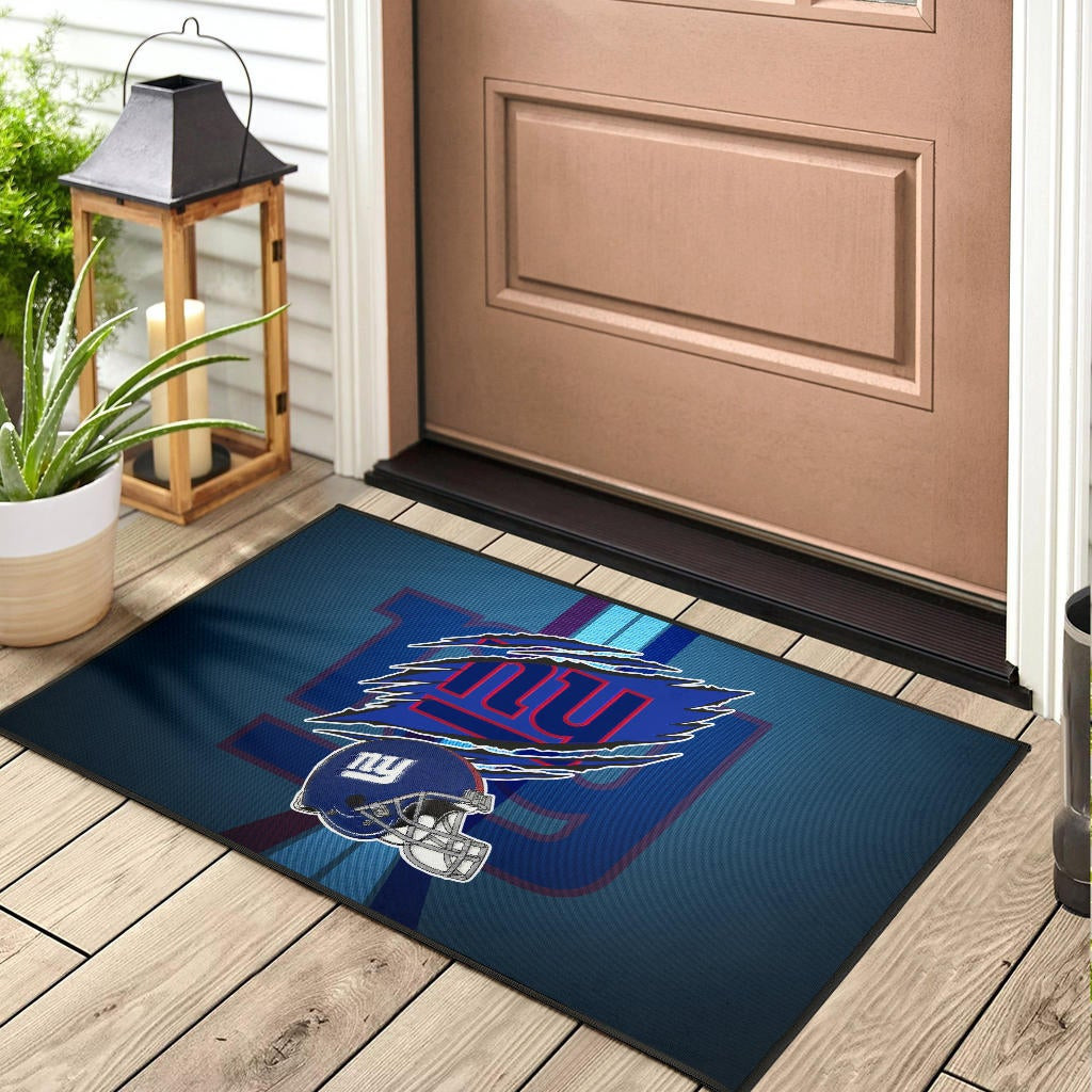 New York Giants American Football Team Rubber Doormat Claw Scratches Reveal NY Text Blue Helmet Rubber Doormat Home Decor