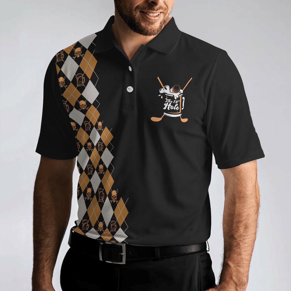 No Shanks Just Dranks The 19th Hole Polo Shirt Argyle Pattern Beer Polo Shirt Golf Shirt For Beer Lovers