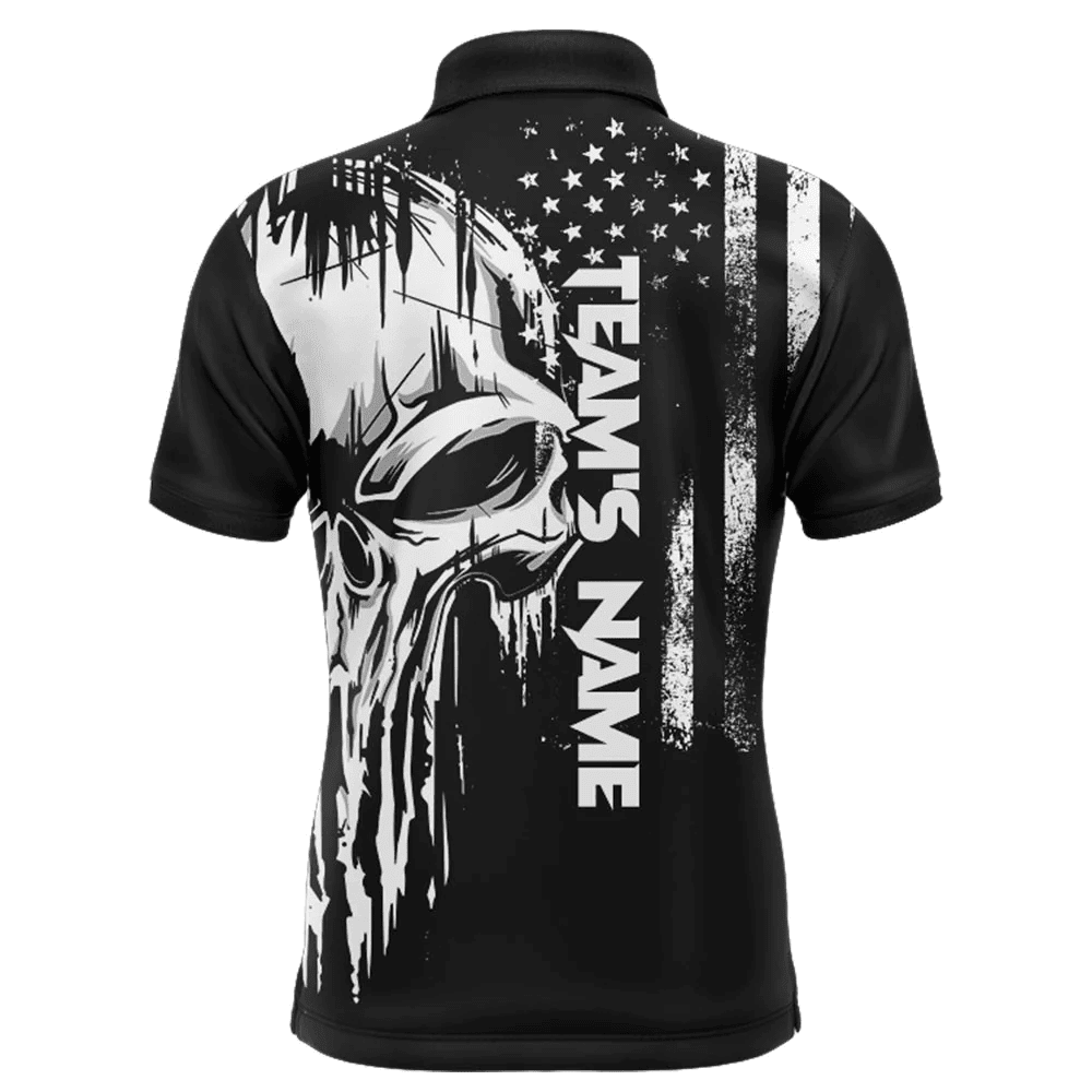Personalized Skull Bowling Shirt for Men, Personalized Team’s Name American Flag Bowler Jersey Polo Shirt