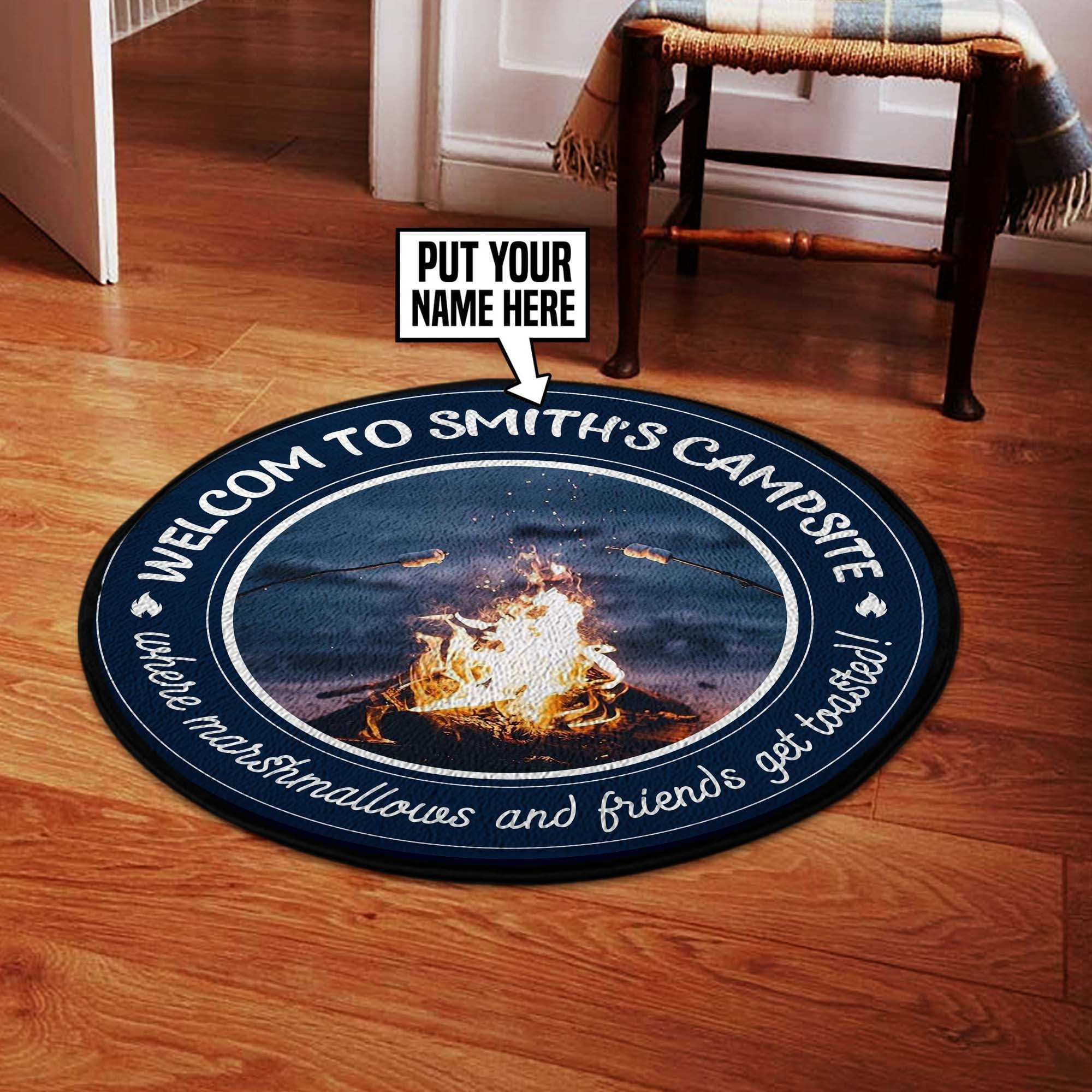 Personalized Welcome To The Campsite Round Rug Carpet Bedroom Livingroom Home Decor