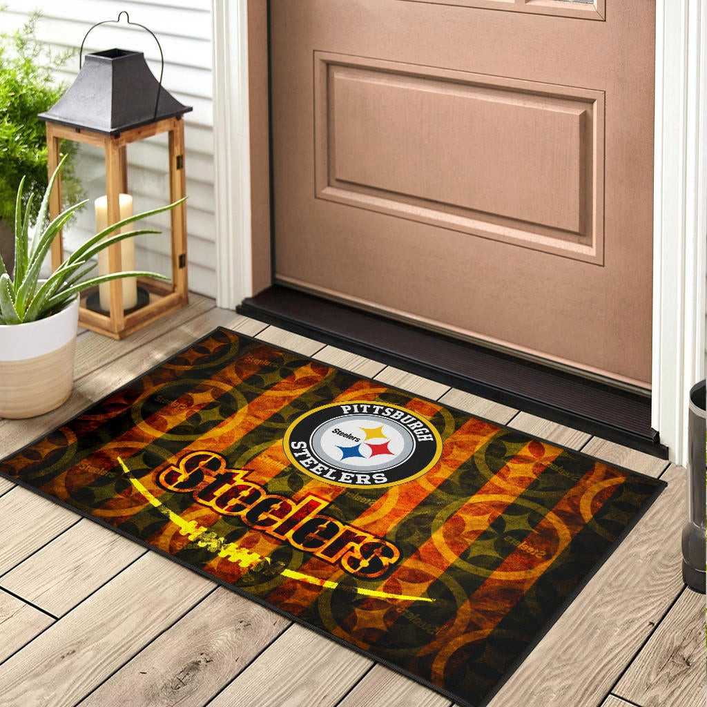 Pittsburgh Steelers American Football Flaming Steelers Background Rubber Doormat Home Decor