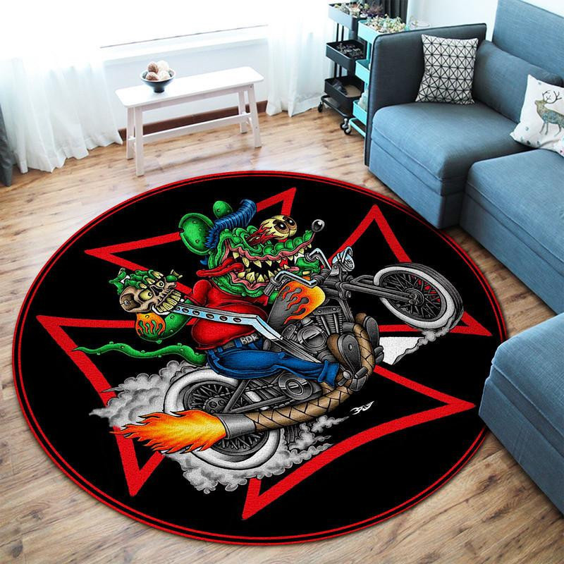 Rat Fink Motocycle Living Room Round Rug Carpet Bedroom Livingroom Home Decor