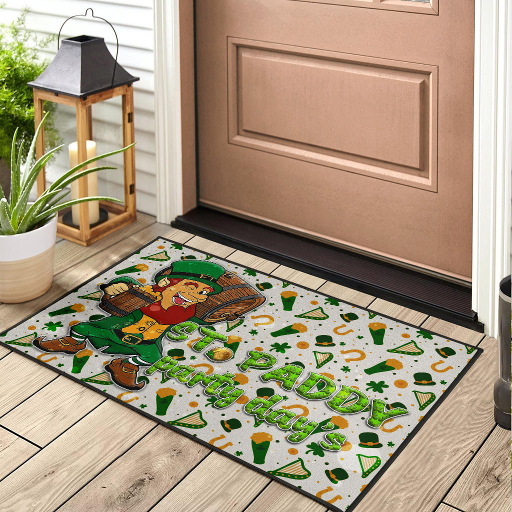 Saint Patrick’s Leprechauns Drinking Beers St. Patrick Symbols Patterns Rubber Doormat Home Decor