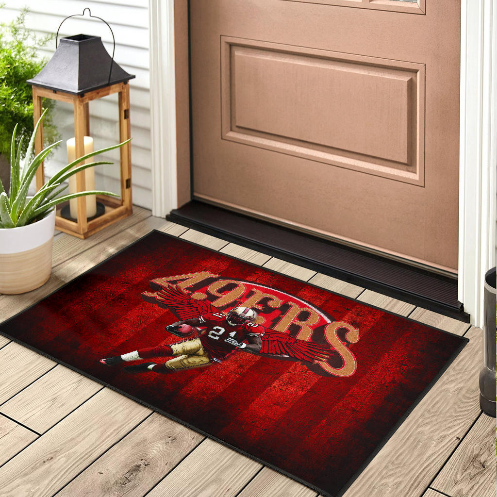 San Francisco American Football 49ers Football Player 21 With Wings Holding Rugby Ball Rubber Doormat Home Decor